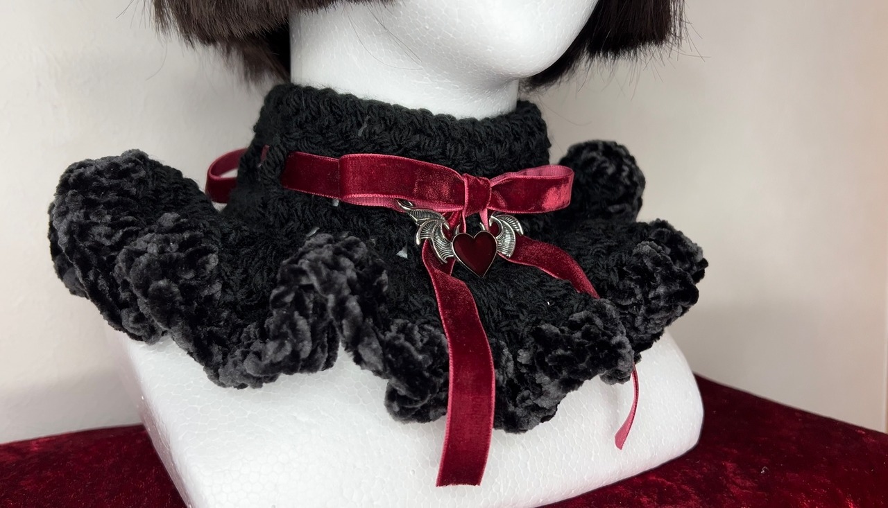 ベルベット調の毛糸を使用したモフモフ素材で、首元をやさしく暖かく包みます。